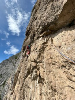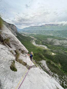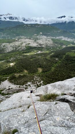 V Petek zjutraj nas je tik pred vstopom v smeri presenetil nepričakovan dež, nekatere v prvem oz. drugem raztežaju kjer je bil potreben abzajl, “najbolj vztrajni pa so se z vsem užitkom kljub mokrim platam prebijali naprej :D”. Popoldne po dežju smo se kar se je hitro dalo podali pod steno san paola drugi pa v parete kjer je bila skala presenetljivo suha, štartali smo vsak v svojo smer a smo kar hitro začutili posledice bolderce zato je bilo plezanje bolj napeto :).