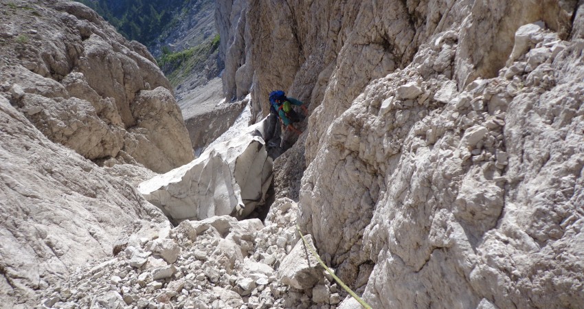 Včeraj sva s Tonetom splezala smer,ki spada v repertoar znamenitih Skalašev( Čop,Jesih,Tominšek…) in ima že dolgo brado ,saj je bila prvič splezana leta 1927.Kaj je naju čakalo v njej?Vsega po malem.Prva tretina smeri poteka po zagruščeni grapi,ki je bila tokrat v spodnjem delu v snegu in te privede na sam raz.Od tu se začenja bolj […]