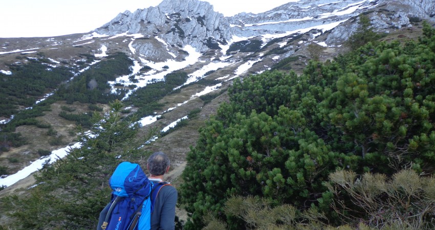 V soboto 28.5 smo se že navsezgodaj ob 4.30h odpravili proti Novemu vrhu. V dostopni grapi je mestoma še nekoliko snega vendar smo brez težav hitro prišli pod steno in si izbrali smeri za plezanje. Gašper B. in Matej P. sta plezala Sestavljanka (V/IV). Gašper L. , Miran V. pa sva vstopila v Meglena (IV+/III) […]