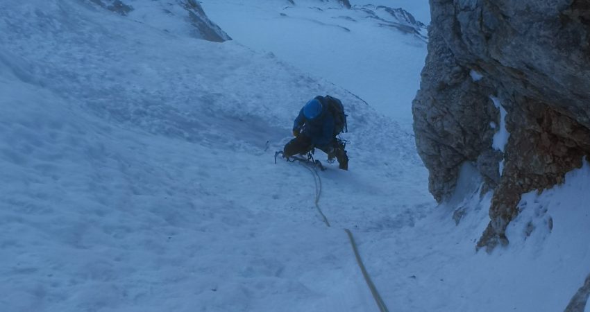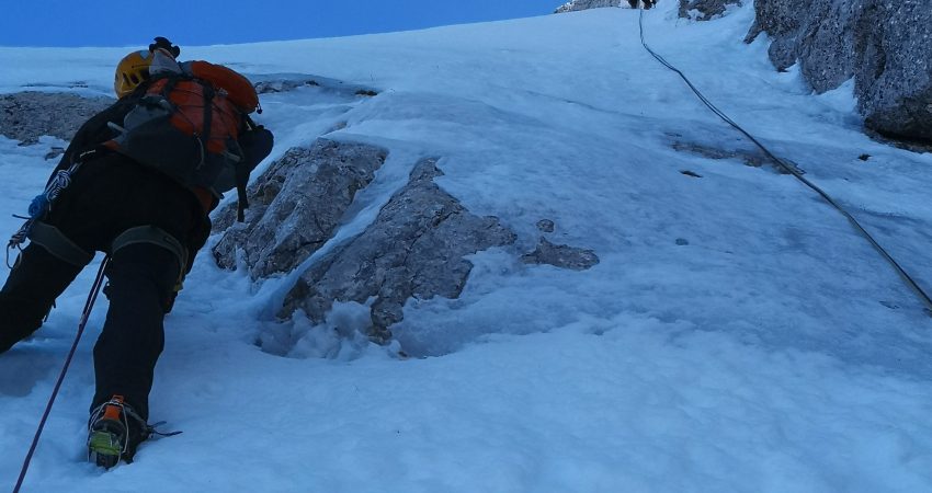 Včeraj v soboto sva z Silvom V. (AO Železničar) že drugič preizkušala slabe razmere v tej grapi. No, če zanemarim nazadnje zapadli sneg, kateri se ni predelal, so bile kar se snega in ledu tiče dobre, da ne rečem top. Negodne so pa bile tople temperature zraka kar se je videlo tudi na mokrih skalah, […]